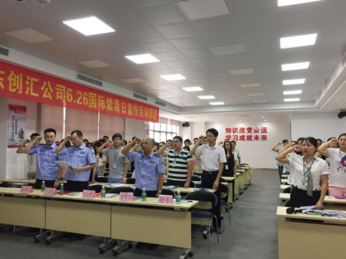 創(chuàng)匯公司常務(wù)副總侯遠(yuǎn)彬在致辭中表示,為了使廣大員工充分認(rèn)識到毒品的危害性,公司特聯(lián)合三角鎮(zhèn)公安局,利用6.26國際禁毒日的專題宣傳活動,來教育廣大員工提高識毒、防毒、拒毒、禁毒意識,徹底認(rèn)清毒品危害,樹立自我保護(hù)意識,廣大員工要一起努力構(gòu)建和諧、平安、無毒企業(yè),共創(chuàng)良好的工作和生活環(huán)境。