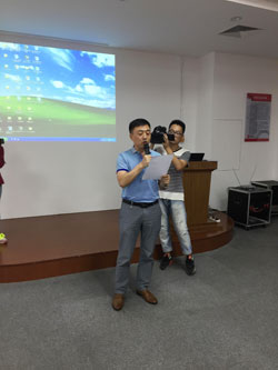 公司常務(wù)副總經(jīng)理侯遠(yuǎn)彬宣讀誓詞 與會人員在條幅上簽名