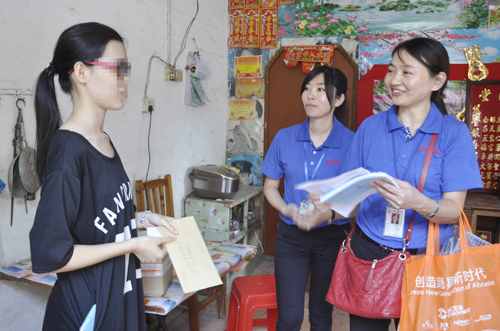 據(jù)三角社會(huì)事務(wù)局關(guān)浩祥局長(zhǎng)介紹,臨近開(kāi)學(xué),一些大學(xué)生卻因?yàn)榧揖忱щy一籌莫展,在三角社會(huì)事務(wù)局工作人員及社區(qū)義工陪同下,廣東創(chuàng)匯實(shí)業(yè)有限公司愛(ài)心基金委員會(huì)主任胥暉,常務(wù)委員楊詠茵,秘書(shū)陳惠華,帶著滿滿的愛(ài),對(duì)10位貧困大學(xué)生進(jìn)行了家庭談訪和資助,送去了每人2500元的助學(xué)金。